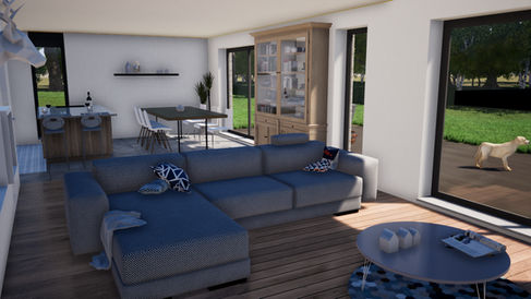 Niveau -90 = espace de vie : cuisine et SàM,