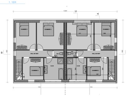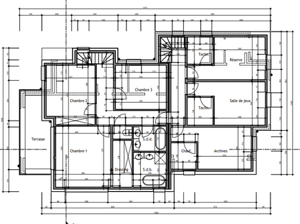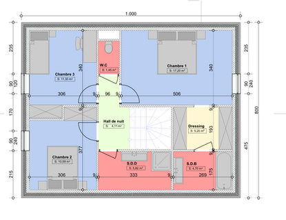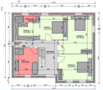 Niveau étage : hall nuit, 3 chambres, 2 SDB.